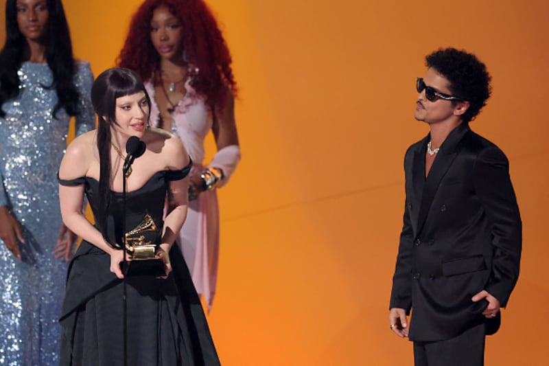 67th GRAMMY Awards - Show LOS ANGELES, CALIFORNIA - FEBRUARY 02: (FOR EDITORIAL USE ONLY) (L-R) Lady Gaga and Bruno Mars accept the Best Pop Duo/Group Performance award for “Die With A Smile” from SZA onstage during the 67th GRAMMY Awards at Crypto.com Arena on February 02, 2025 in Los Angeles, California. (Photo by Amy Sussman/Getty Images) (Amy Sussman/Getty Images)