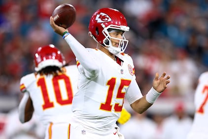 Kansas City Chiefs v Jacksonville Jaguars JACKSONVILLE, FLORIDA - OCTOBER 06: Patrick Mahomes #15 of the Kansas City Chiefs throws a pass against the Jacksonville Jaguars during the first quarter at EverBank Stadium on October 06, 2025 in Jacksonville, Florida. (Photo by Megan Briggs/Getty Images) (Megan Briggs/Getty Images)