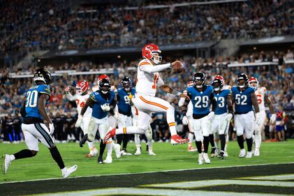 Kansas City Chiefs v Jacksonville Jaguars JACKSONVILLE, FLORIDA - OCTOBER 06: Patrick Mahomes #15 of the Kansas City Chiefs scores a touchdown against the Jacksonville Jaguars during the second quarter at EverBank Stadium on October 06, 2025 in Jacksonville, Florida. (Photo by Mike Carlson/Getty Images) (Mike Carlson/Getty Images)