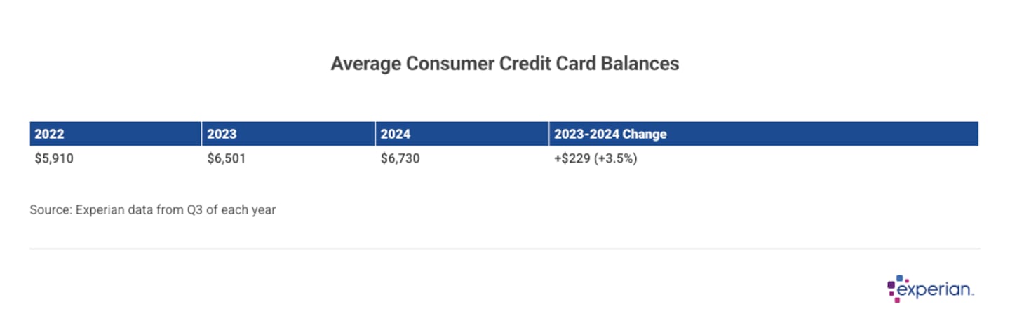 Average credit card debt increased 3.5% to $6,730 in 2024