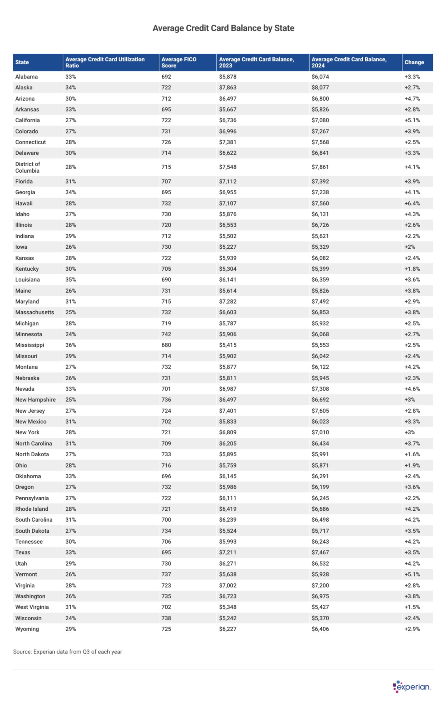 There was no great deviation among the states in their average credit card balance growth in 2024.