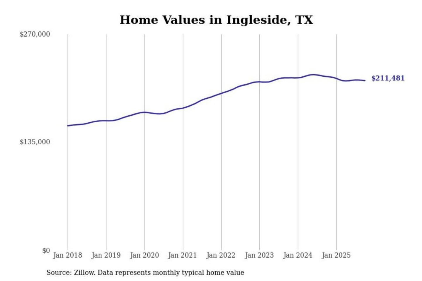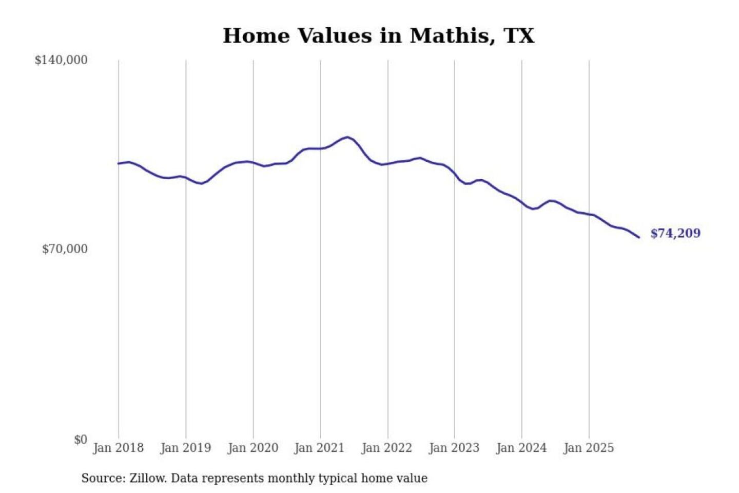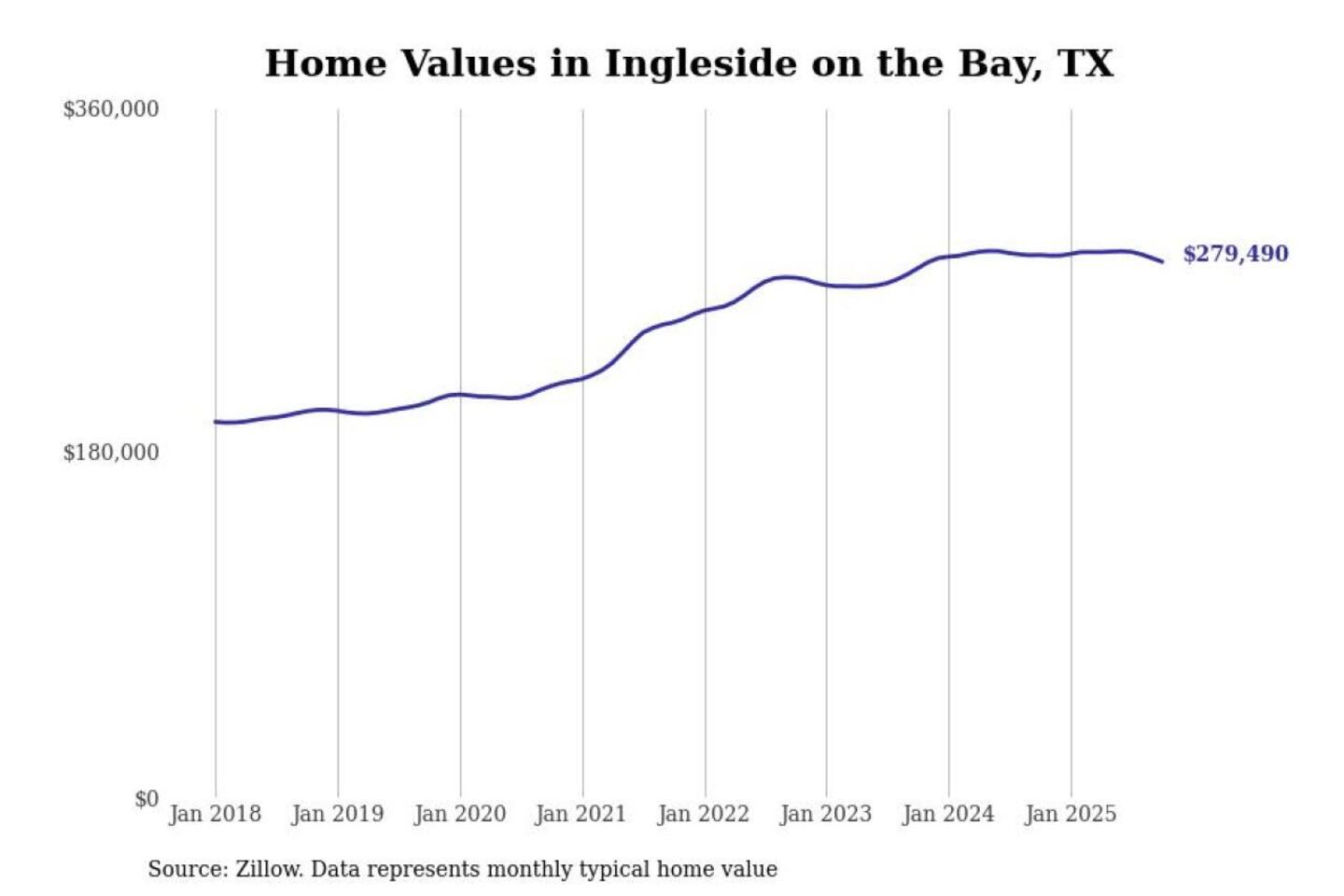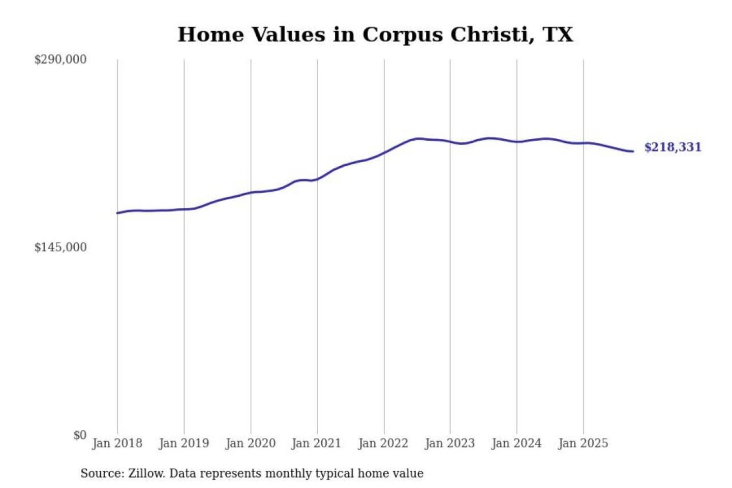 Stacker compiled a list of cities with the most expensive homes in the Corpus Christi, TX metro area using data from Zillow. Charts show the monthly typical home value since January 2018.