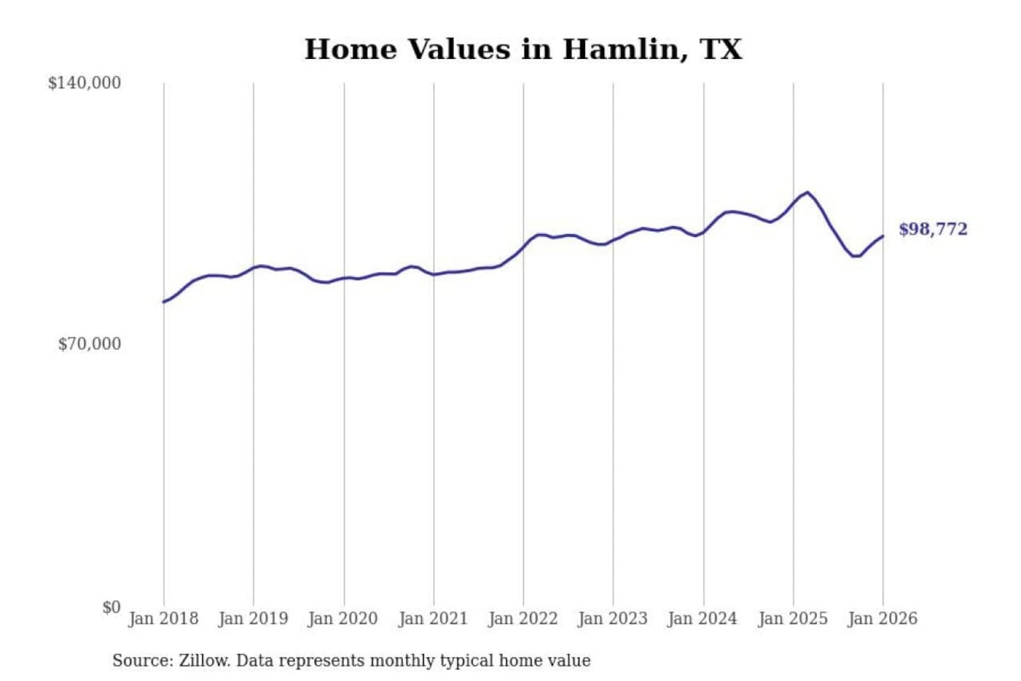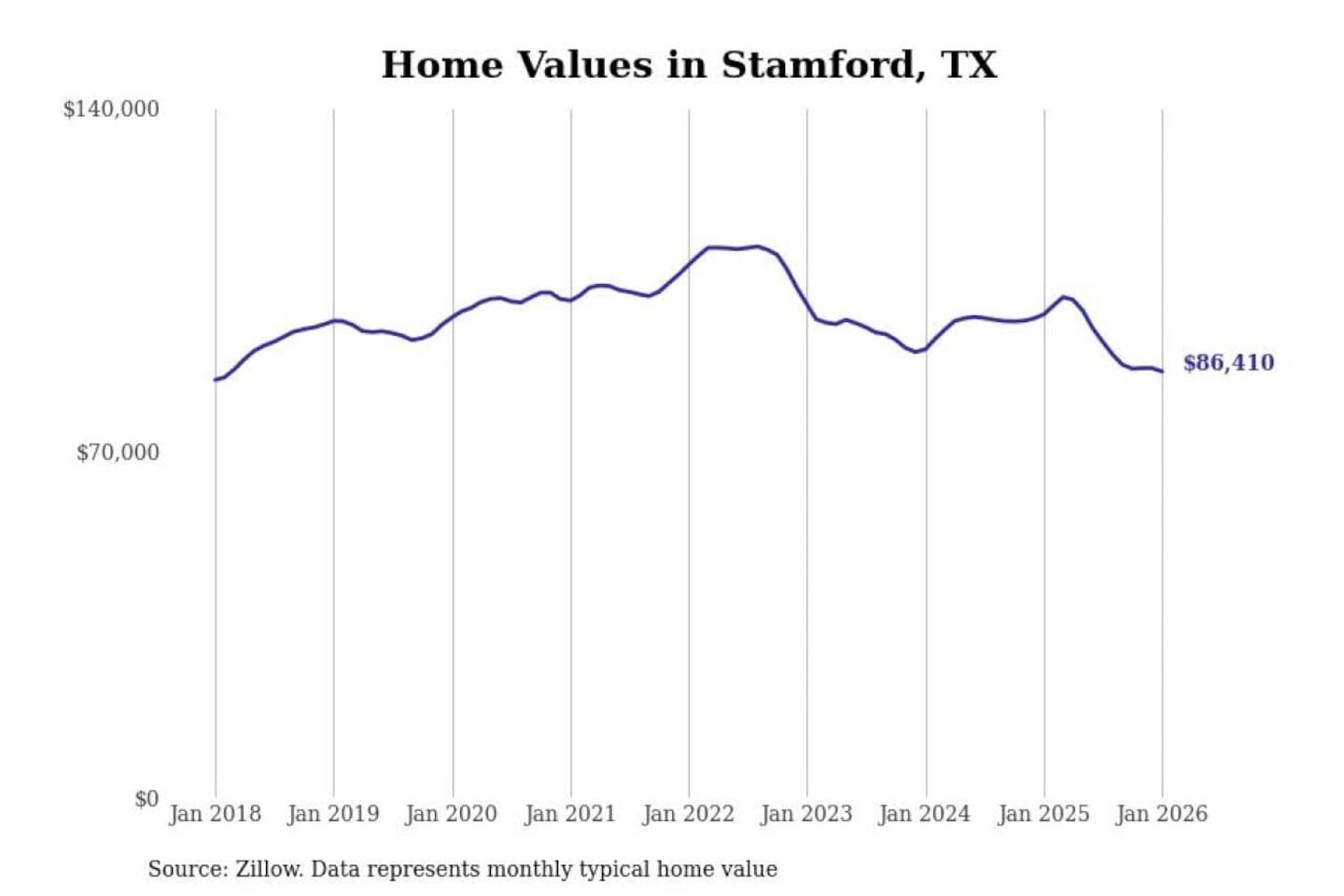 Stacker compiled a list of cities with the most expensive homes in the Abilene, TX metro area using data from Zillow. Charts show the monthly typical home value since January 2018.