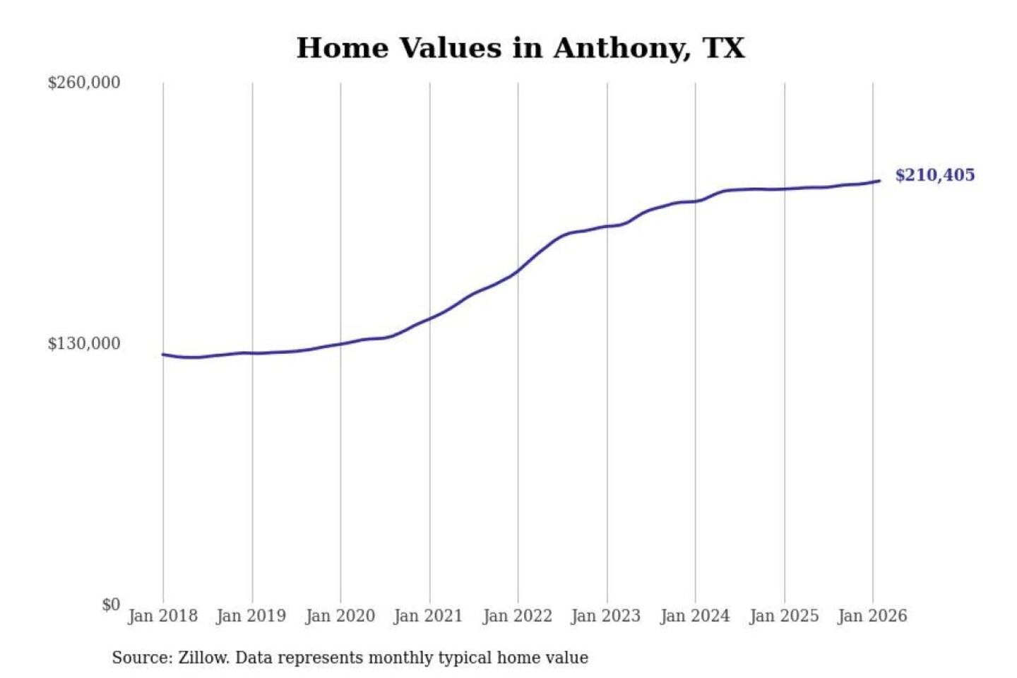 Stacker compiled a list of cities with the most expensive homes in the El Paso, TX metro area using data from Zillow. Charts show the monthly typical home value since January 2018.
