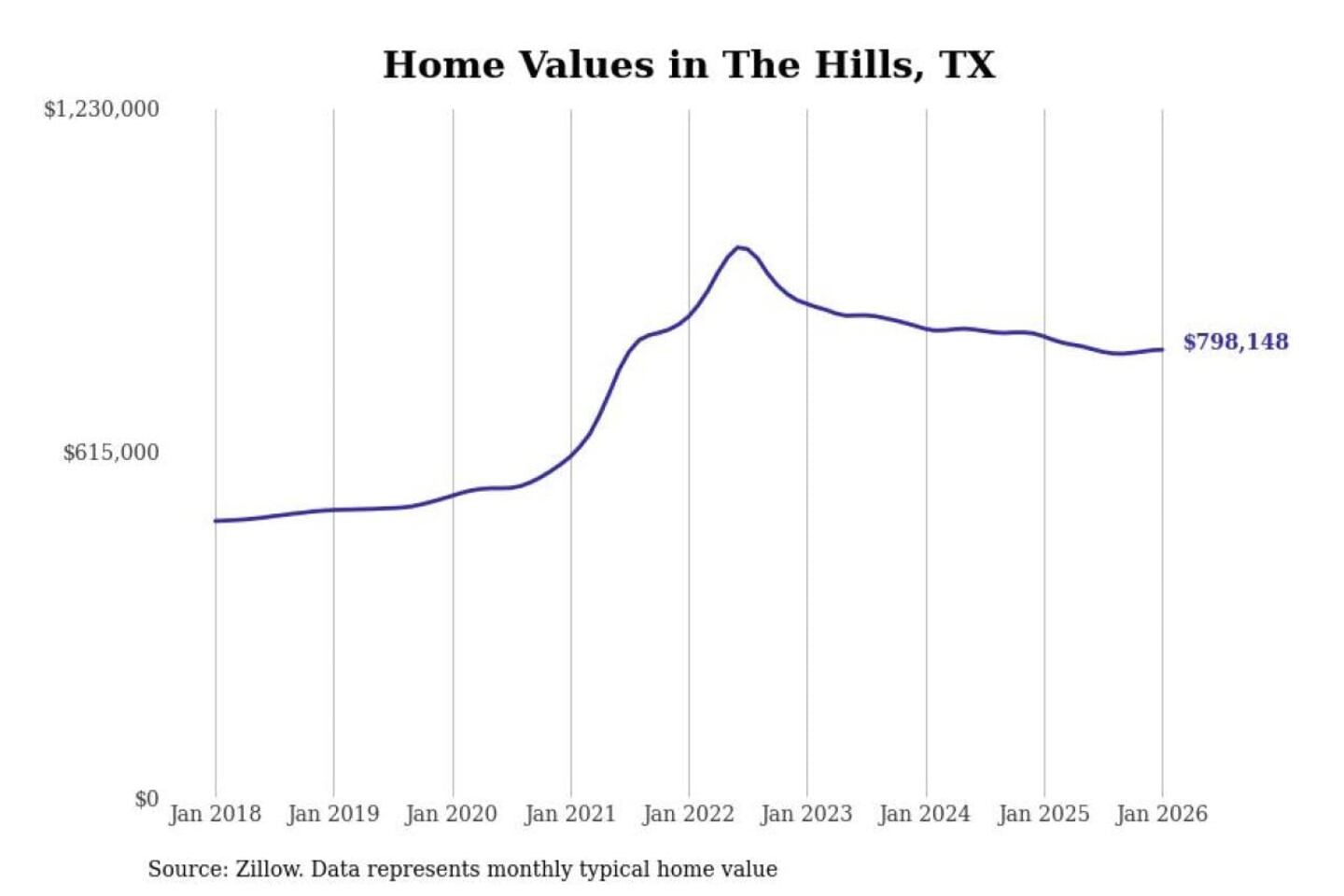 Stacker compiled a list of cities with the most expensive homes in the Austin metro area using data from Zillow. Charts show the monthly typical home value since January 2018. Data was available for 52 cities and towns.