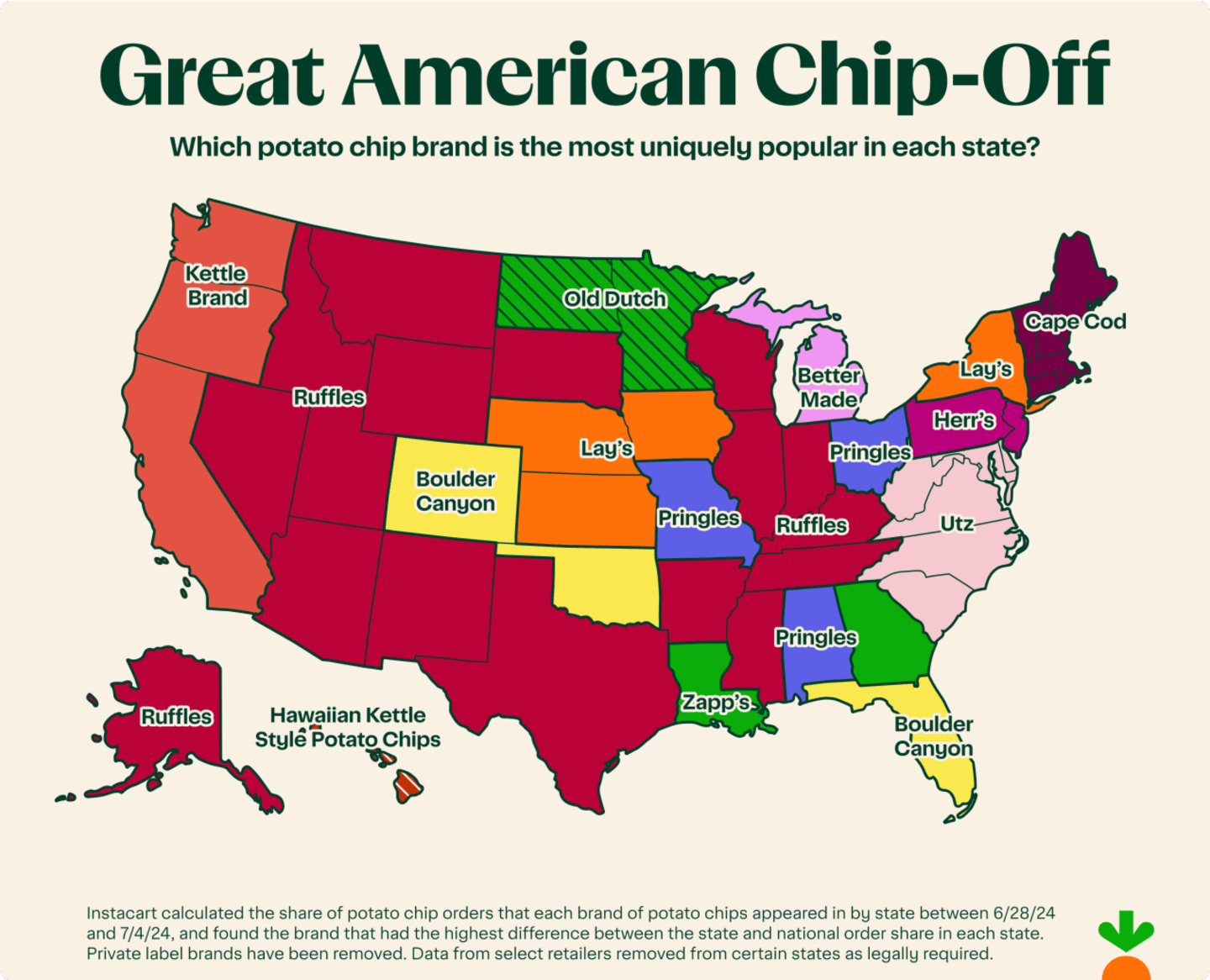 Chips are more than just a side — they’re a Fourth of July staple. Whether paired with burgers, dips, or enjoyed straight from the bag, chips play an important role in holiday spreads. And while everyone loves a good potato chip, distinct chip preferences emerge across different regions of the U.S.: