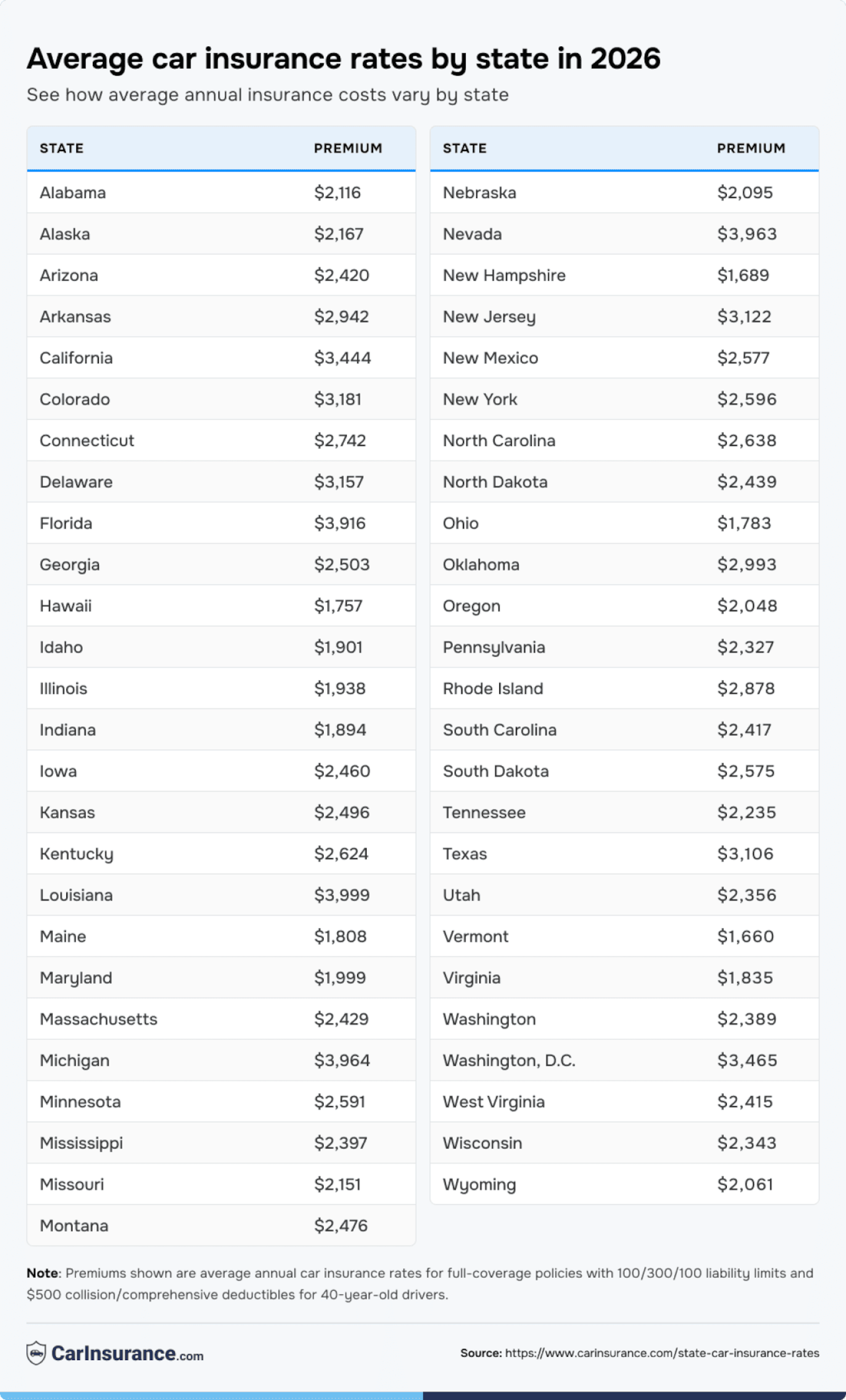 See the table below for average full-coverage car insurance rates by state.