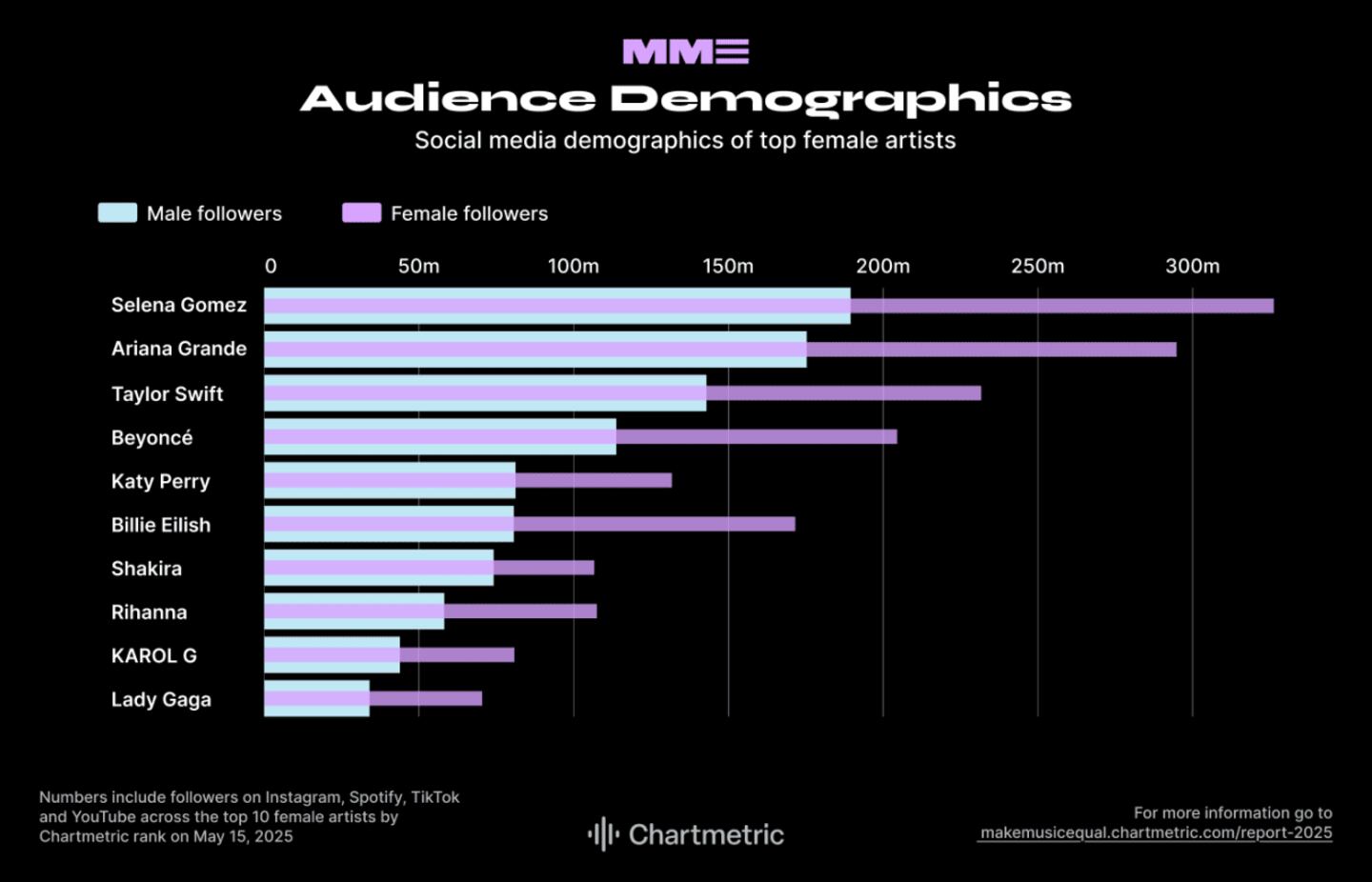 This pattern highlights the strength and consistency of female fandom culture, particularly their roles in driving artist engagement on social platforms. In today’s music economy, where digital presence often fuels career momentum, the loyalty and enthusiasm of female fans continue to shape who rises to—and stays at—the top.