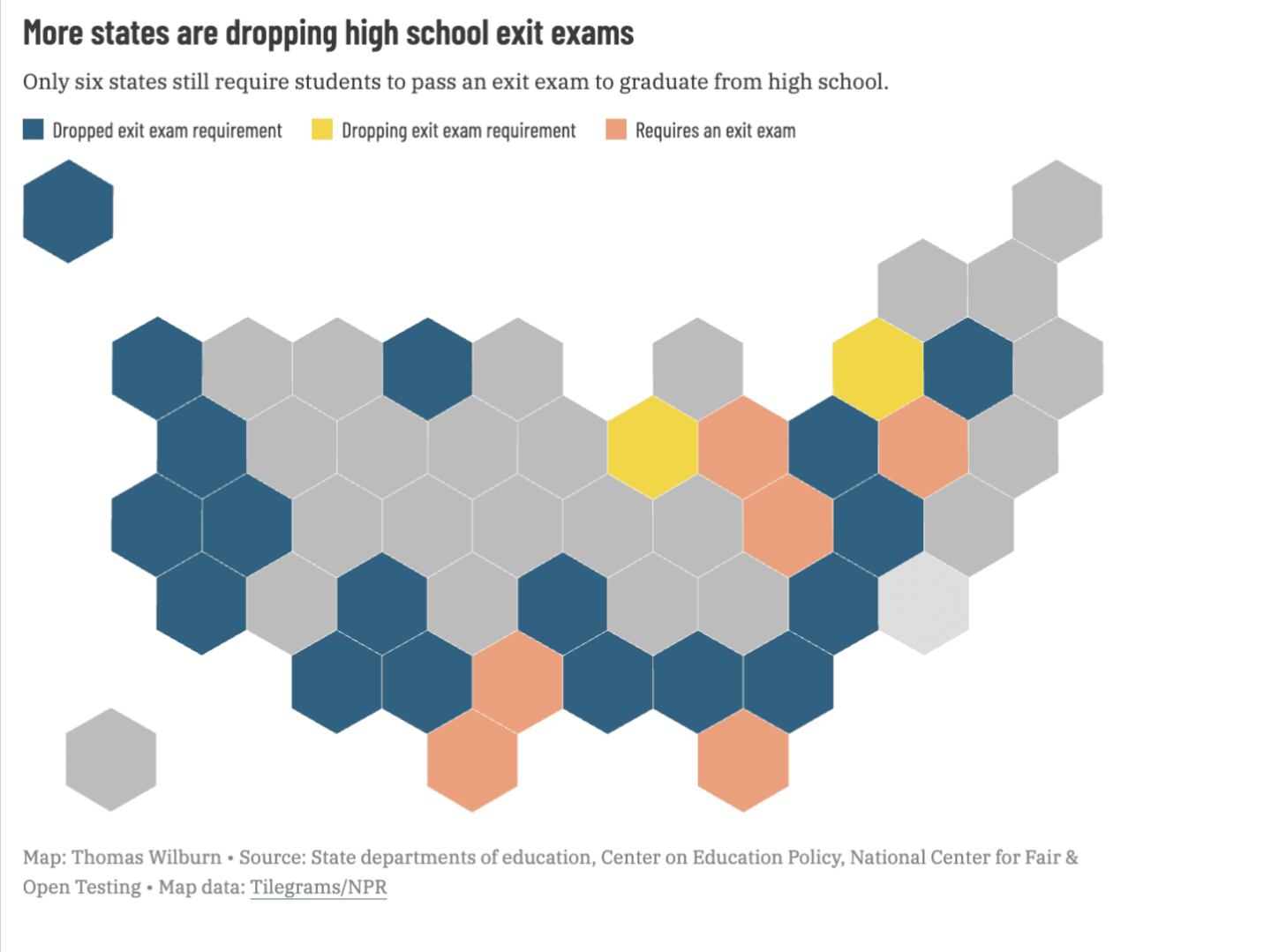 But absent an exit exam, states haven't really reached a consensus on what students should have to do to prove they're ready to graduate.