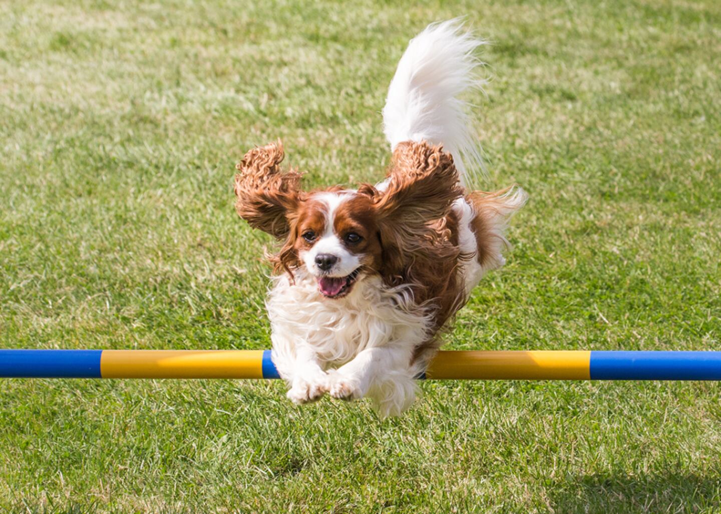 Cavalier King Charles spaniels were named in honor of King Charles I and his son, King Charles II, European nobility who were especially fond of toy spaniels. Standing 12 to 13 inches tall and weighing just 13 to 18 pounds, these spaniels are among the larger toy breeds—not that this fact stops them from wanting to cuddle up on their owners' laps.