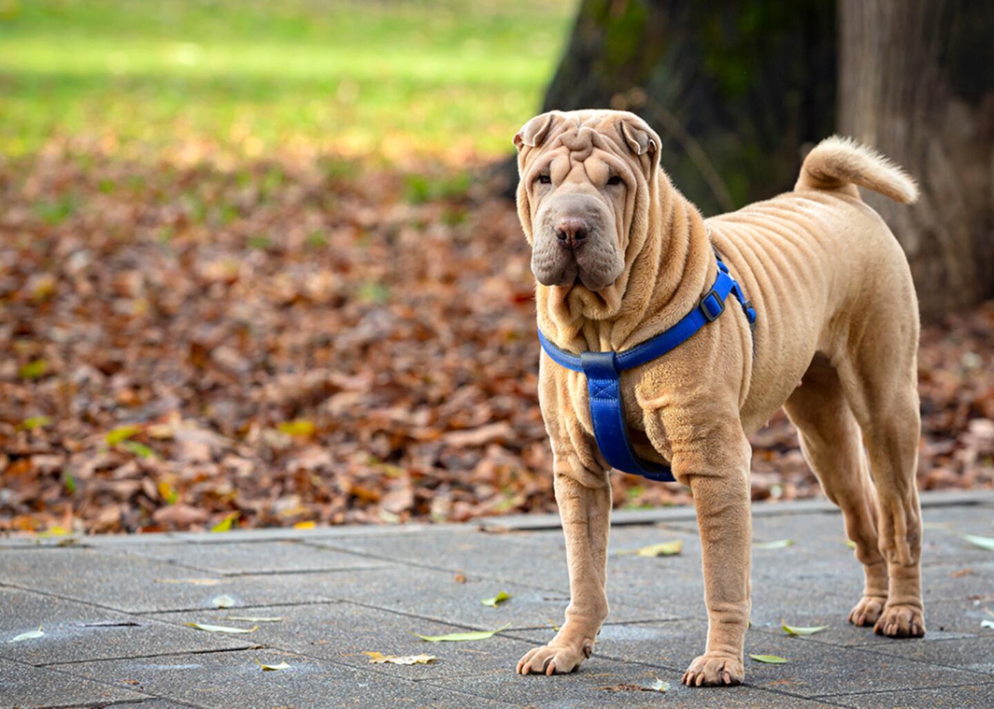 With their wrinkly muzzles, teensy ears, and blue-black tongues, Chinese shar-peis are quite unusual-looking dogs. Regal and strong, these dogs are famous for their dedication and loyalty to their owners.