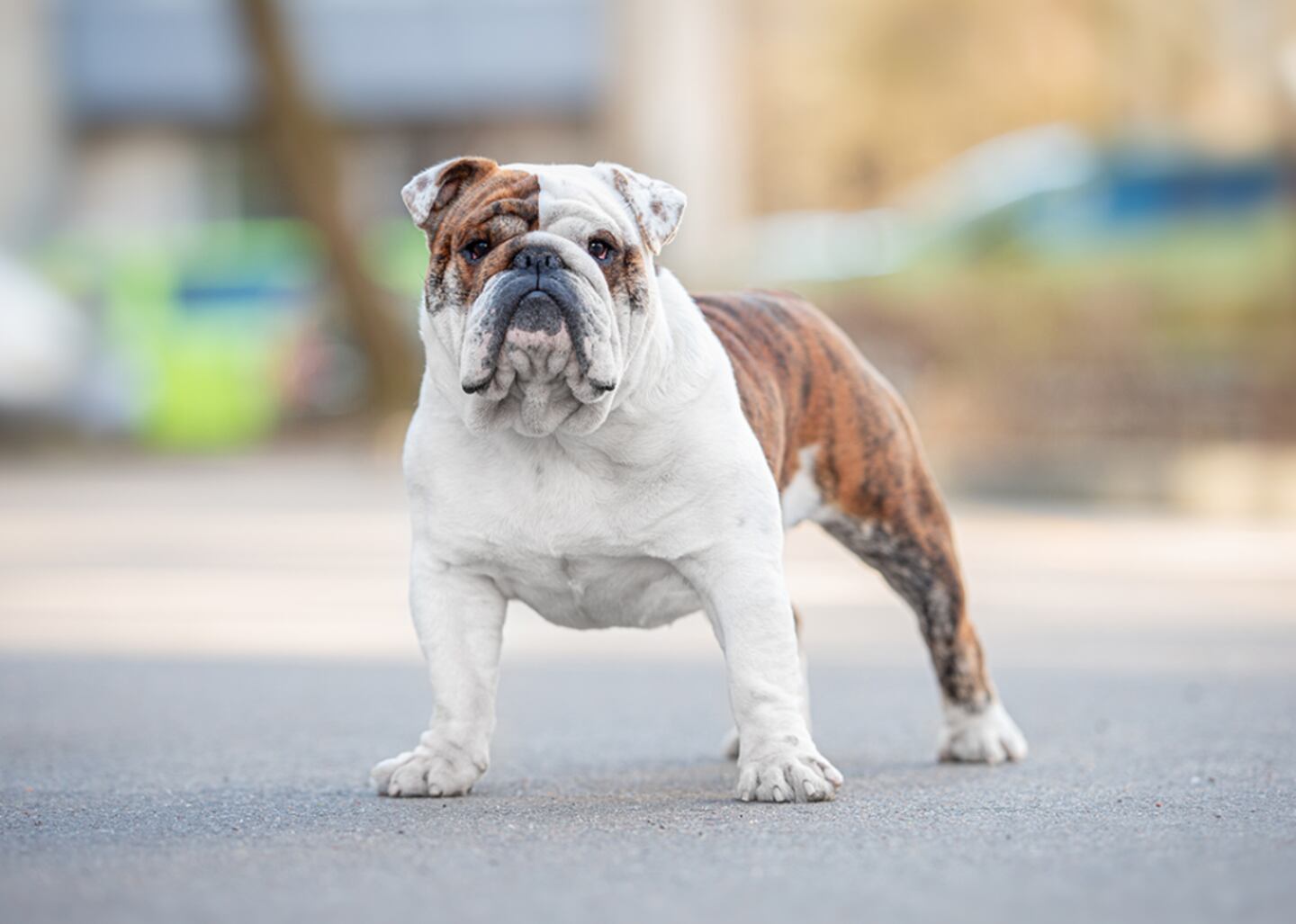 Friendly and courageous, the bulldog has a bold personality. The dog's signature face—with droopy lips, a pushed-in nose, and a furrowed brow—is irresistible to bulldog enthusiasts.