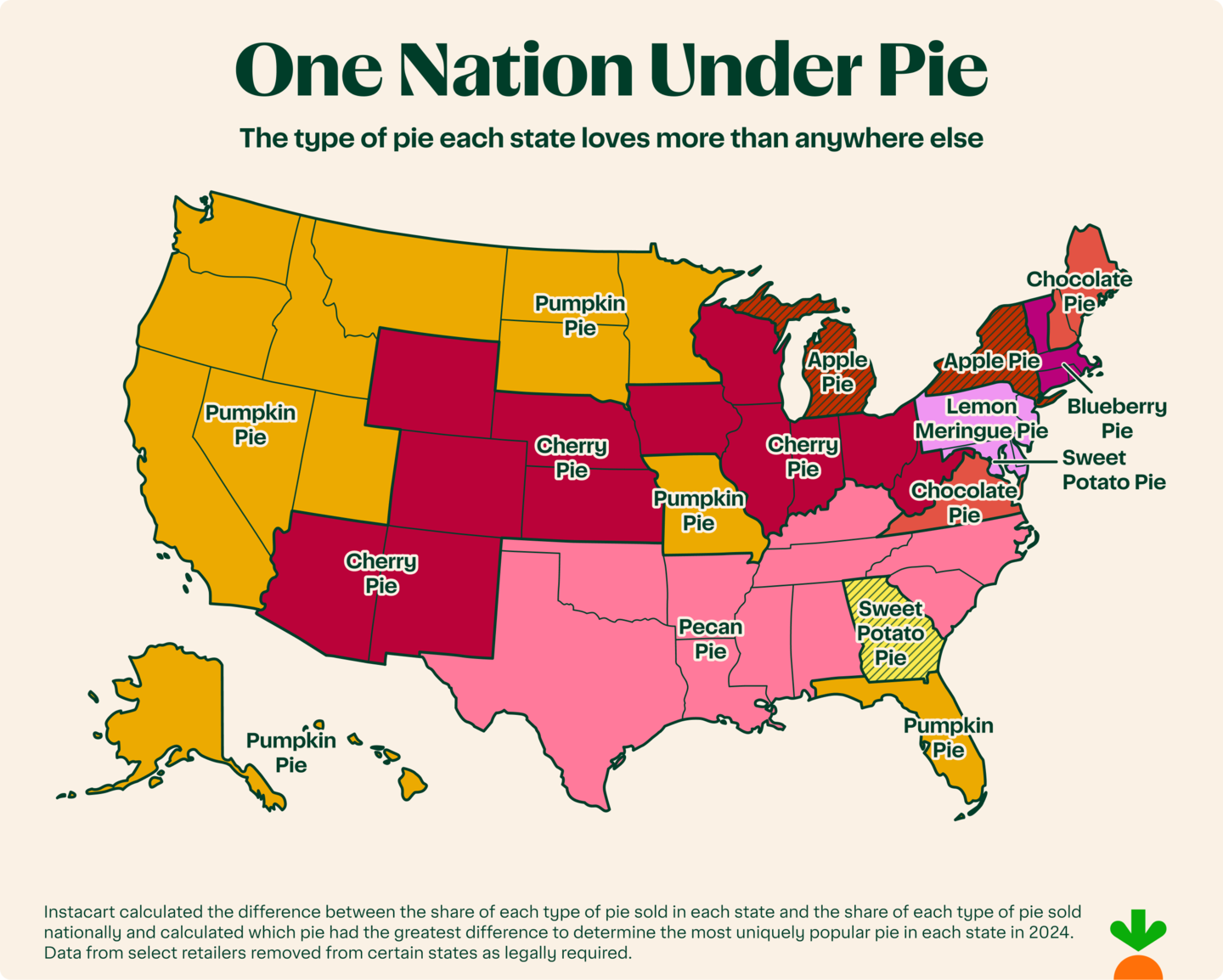 In celebration of Pi Day on March 14 (3/14)—a food holiday savored for making math just a little sweeter—Instacart serves up a healthy slice of its ordering data to determine which pies win Americans' hearts and stomachs, uncovering surprising regional favorites and unexpected sweet trends.