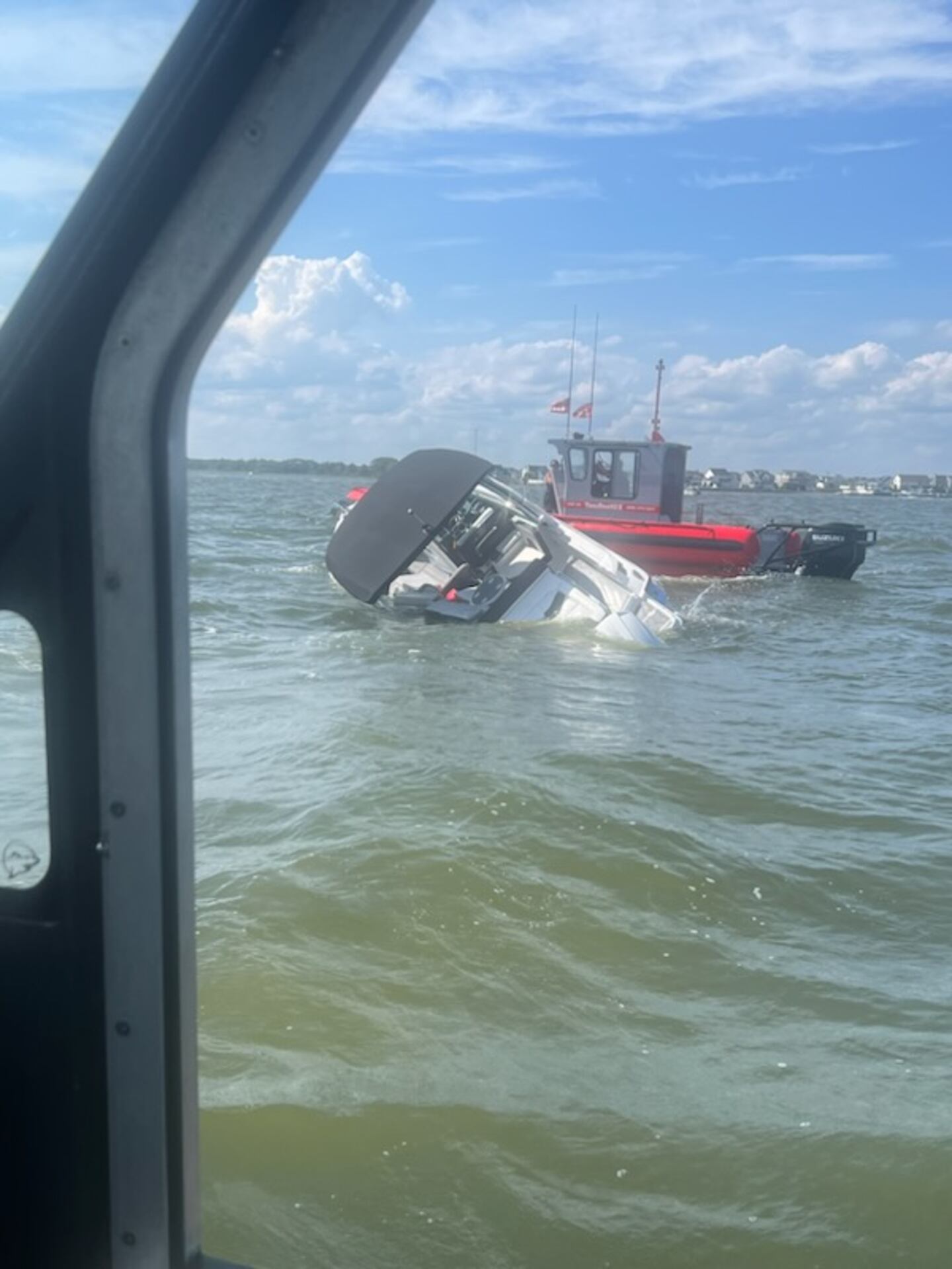 The recreational boat was sinking in Barnegat Bay about 50 miles north of Atlantic City when the Coast Guard response crew arrived. The four people and the dog were transferred to the Coast Guard boat just before the boat capsized, according to NBC News.