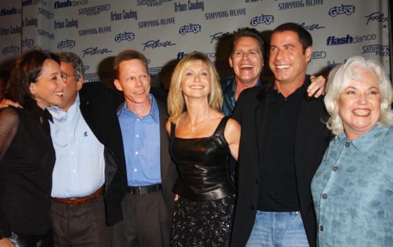 The actor traded his black “T-Birds” leather jacket for a red one that reads “S - Claus” with elves replacing the rest of the T-Birds gang working on a sleigh that looks a lot like the car from the film, Entertainment Weekly reported.