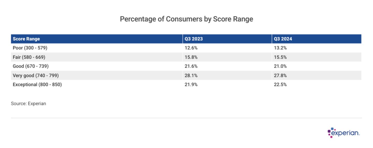 Nationwide, Experian noted no change in the average FICO Score, which held steady at 715 through the 12 months ending September 2024.