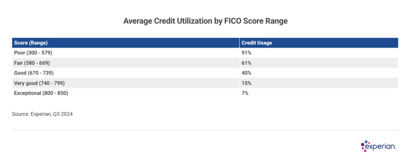 - Keep revolving balances low. Credit utilization is one of the most important factors in credit score calculations. Keeping overall credit usage below 30% won't by itself generally translate into having at least a good FICO® Score (670 or higher), but those consumers with the highest credit scores (740+) credit utilization rates below 30% on average. Those with the highest credit scores tend to have credit utilization in the low single digits.